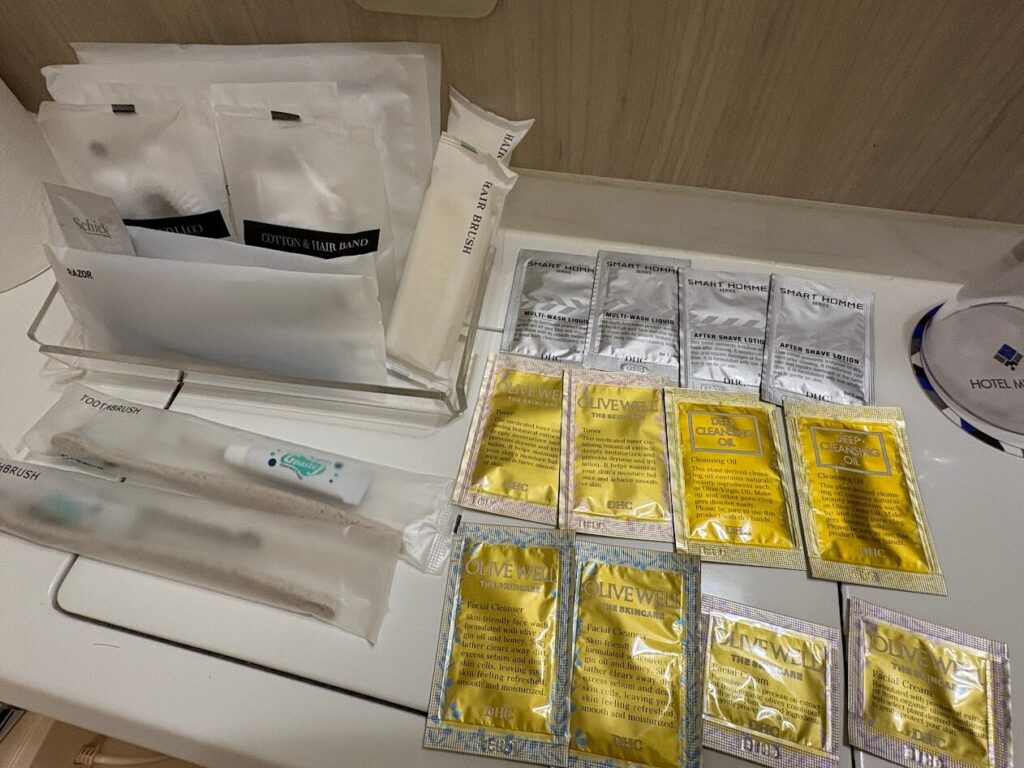 オーソドックスなアメニティーのほか、女性用・男性用のスキンケアラインも揃っています。