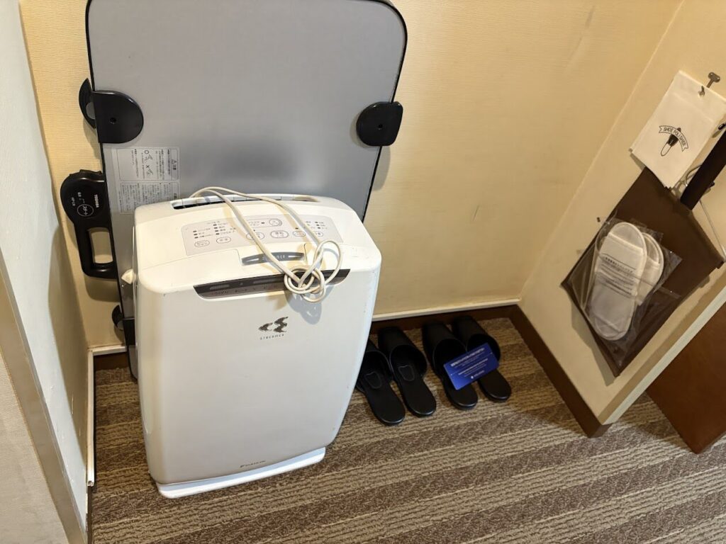 スリッパはしっかりしたものと、使い捨てと両方準備されており、スボンプレッサーも各部屋についていて、かなり備品が充実しています。